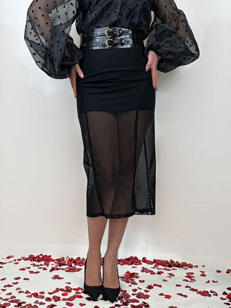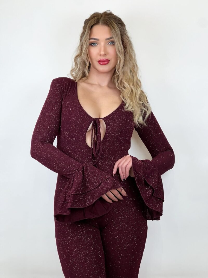 Rhinestone Mesh Pleated Maxi Dress in Red