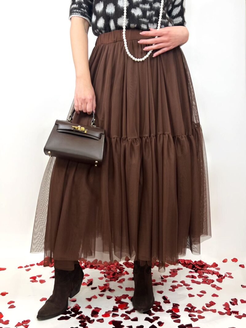 Tulle Maxi Skirt in Brown