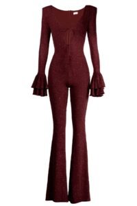 - Body-hugging glitter mesh jumpsuit.