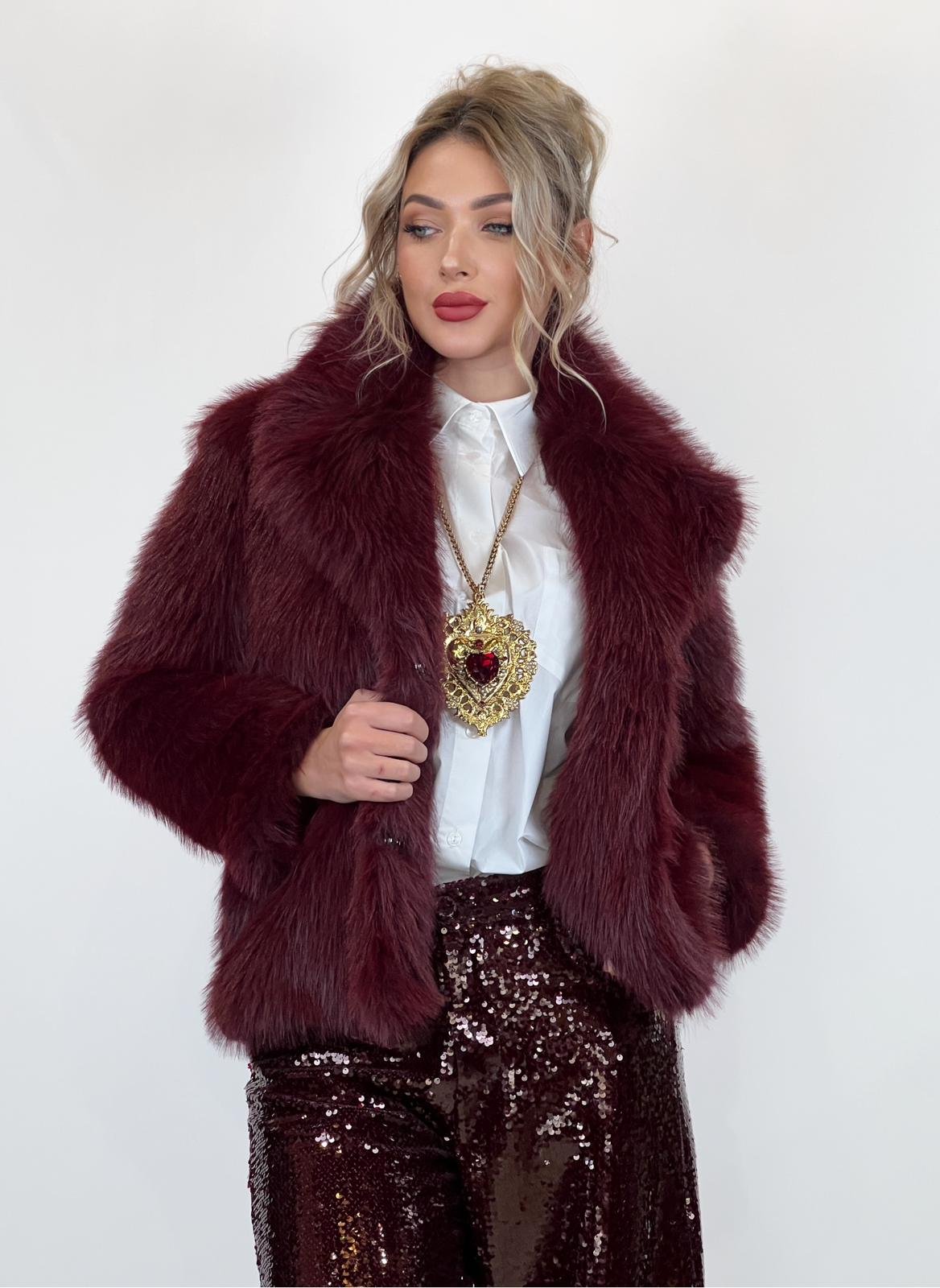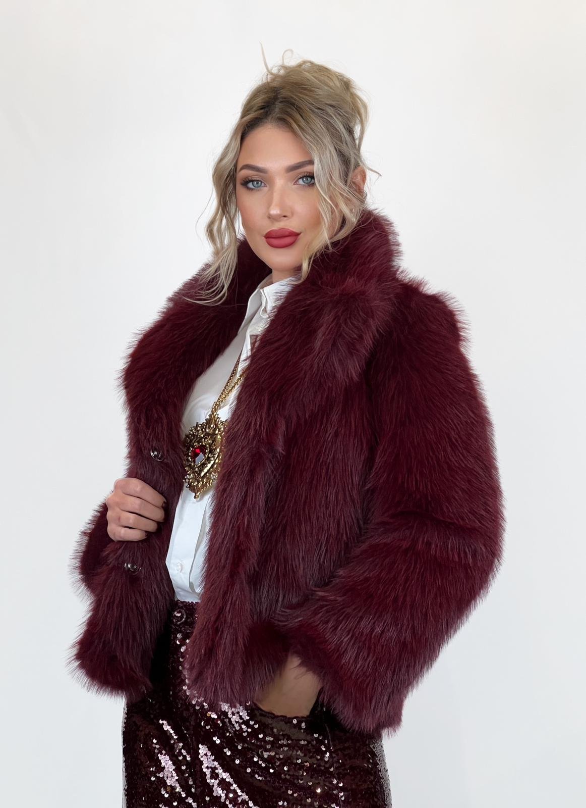 Faux fur Jacket in Burgundy