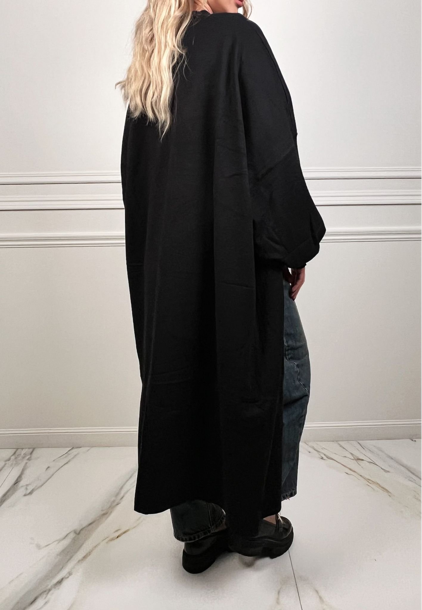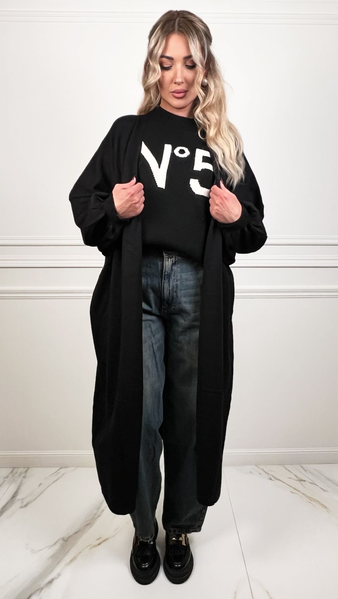 Refresh your knitwear collection with our Black Knitted Long Sleeve Midi Cardigan. Featuring long sleeves and a midi length – this cardigan is cosy yet stylish. Team with your favourite pair of jeans for a weekend look you won’t stop reaching for.