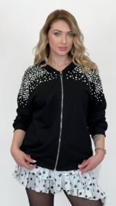 Oversized Sweatshirt with Jewel Applique in Black