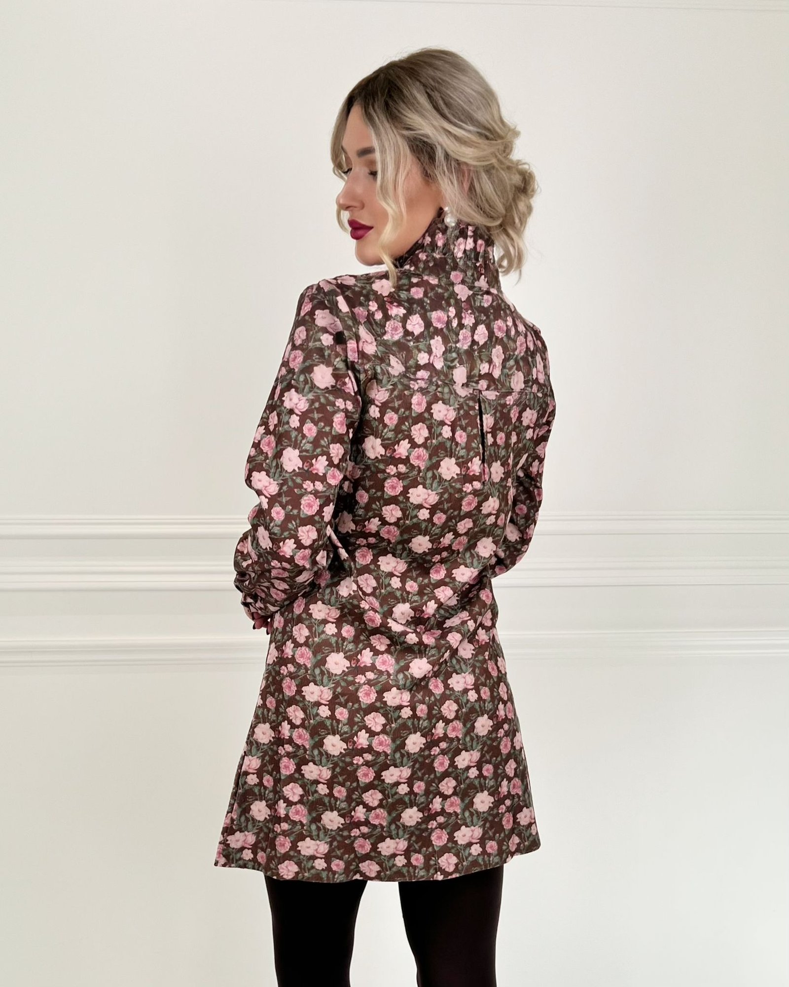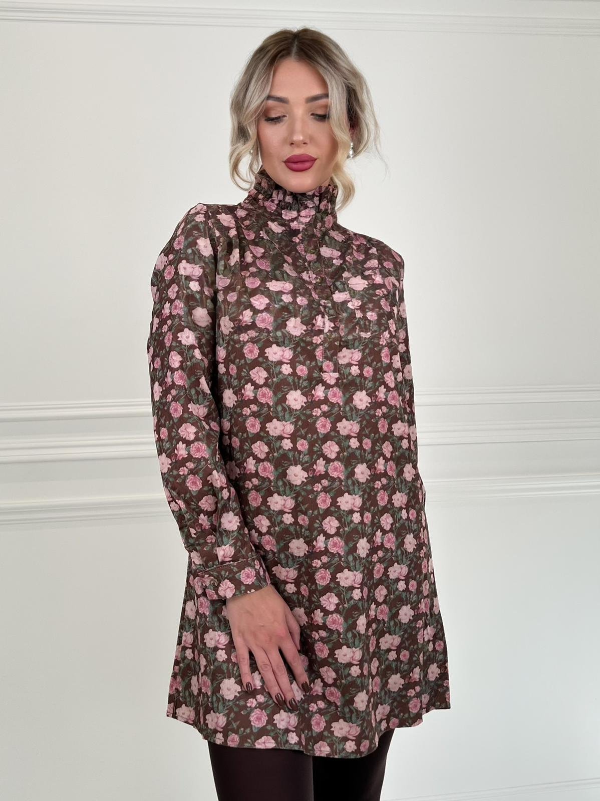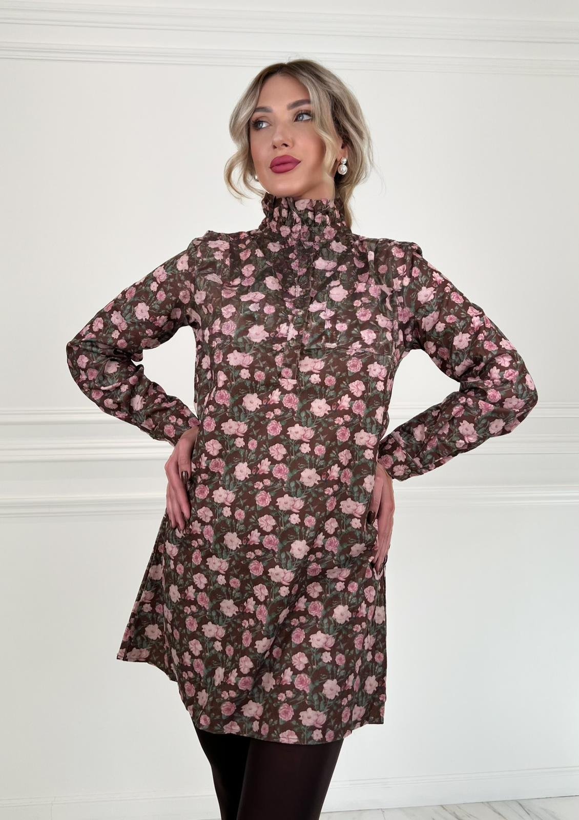 This Victorian style floral dress comes with a high neck and a classic button up in the front.
